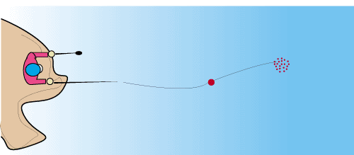 | 2. Reel in any slack line, and move the hook bait into the attractant cloud. |