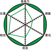 本品有一定重量,可直击较深的海底,是纪州钓,丸子钓的基础饵。本品为微细粉末,以少量海水即很容易捏团,着底后破裂顺利。在海底也很显眼的白色丸子在下沉途中放出浑浊不多,集中在一点,可诱引黑鲷。适宜水深约为8~20m。
