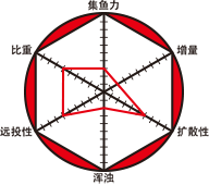 即使水量较少,也能良好成型,同时具备很好的远投性能。在水中会一边雾化,一边呈斜坡状扩散。在黑鲷钓法中拥有极高实力的黄色麦粒 ,能够强烈吸引鱼的视觉注意。